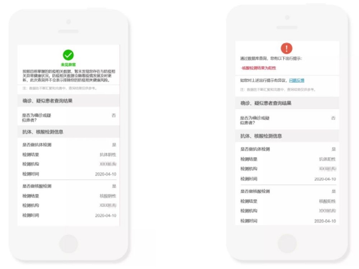 此外,核酸和抗體檢測(cè)結(jié)果信息還納入了全國(guó)一體化平臺(tái)“防疫健康信息碼”服務(wù)。用戶可通過(guò)國(guó)家政務(wù)服務(wù)平臺(tái)微信、支付寶、百度小程序,根據(jù)操作指引申領(lǐng)國(guó)家平臺(tái)的“防疫健康信息碼”,“防疫健康信息碼”會(huì)如實(shí)反映本人7天內(nèi)核酸及抗體檢測(cè)結(jié)果。如核酸檢測(cè)結(jié)果為陰性,則防疫健康風(fēng)險(xiǎn)狀態(tài)顯示“未見(jiàn)異?!?。如核酸檢測(cè)結(jié)果為陽(yáng)性,則會(huì)出現(xiàn)“核酸檢測(cè)結(jié)果為陽(yáng)性”的出行提示。如果7天內(nèi)未做過(guò)核酸及抗體檢測(cè),防疫健康信息會(huì)根據(jù)個(gè)人當(dāng)前提供的相關(guān)數(shù)據(jù)顯示健康風(fēng)險(xiǎn)結(jié)果。