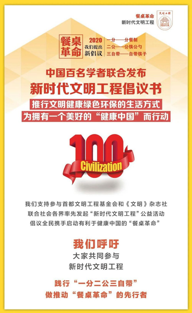 大家一起攜手一起參與一起支持,讓新時(shí)代文明工程餐桌革命助力“健康中國”!