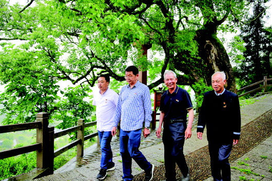 5月21日,金坵村的四位村書記蘭文忠(現(xiàn)任)、潘欣根、陳立平、雷正余(從左至右)走在村里的小路上。記者崔力攝