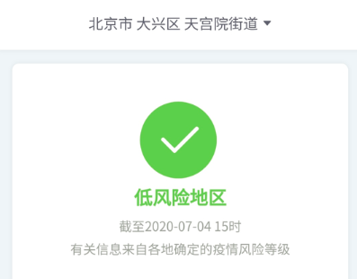 北京日?qǐng)?bào)記者從國(guó)務(wù)院客戶端小程序“疫情風(fēng)險(xiǎn)等級(jí)”了解到,截至7月4日15時(shí),北京市大興區(qū)天宮院街道、清源街道由中風(fēng)險(xiǎn)地區(qū)調(diào)整為低風(fēng)險(xiǎn)地區(qū);北京市大興區(qū)黃村(地區(qū))鎮(zhèn)由高風(fēng)險(xiǎn)降級(jí)為中風(fēng)險(xiǎn)。