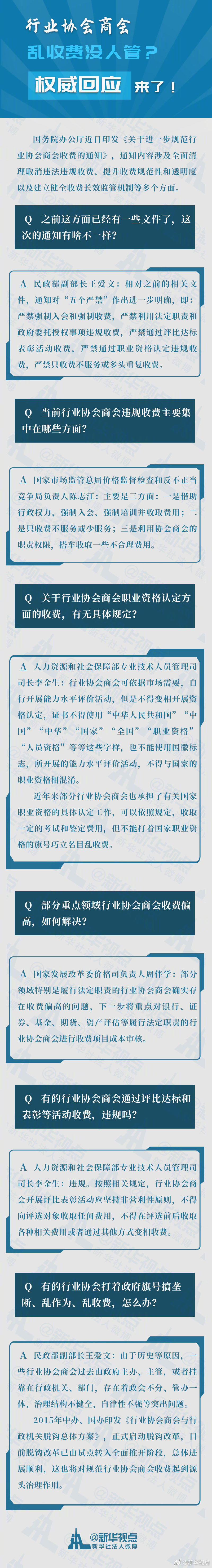 國務院辦公廳近日印發(fā)《關(guān)于進一步規(guī)范行業(yè)協(xié)會商會收費的通知》,通知有啥亮點?行業(yè)協(xié)會商會亂收費、高收費問題如何解決?評比達標、表彰活動收費是否違規(guī)?......民政部等相關(guān)部門負責人給出權(quán)威回應。