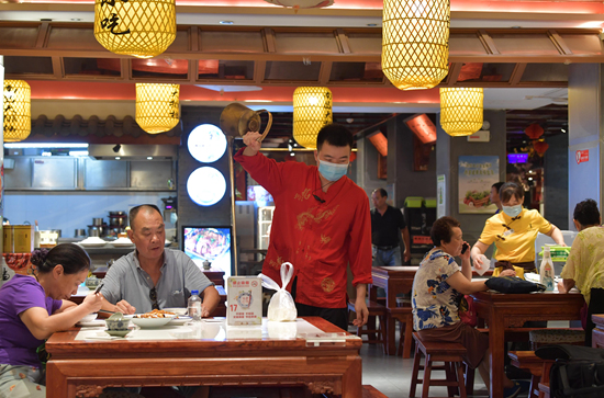 近日,寧夏餐飲飯店協(xié)會發(fā)出“厲行節(jié)約、杜絕浪費”倡議書。不少顧客主動將餐后剩余飯菜進行打包,一同杜絕浪費,踐行“光盤”行動。新華社記者 馮開華/攝