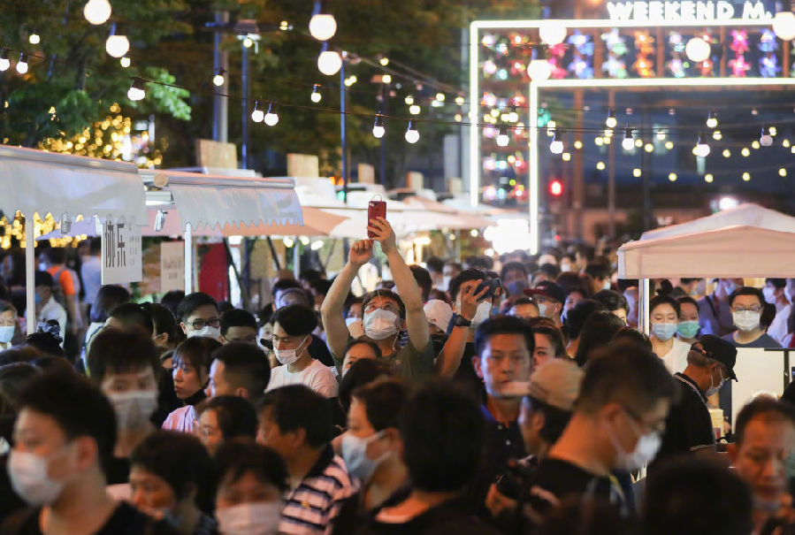 ?2020年6月6日,市民在上海市黃浦區(qū)的一處夜市消費休閑。新華社記者 丁汀 攝 ?