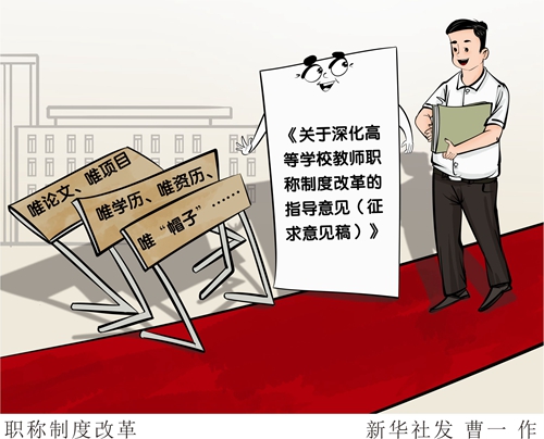 為進一步完善高校教師評價機制,人社部、教育部前不久發(fā)布的《關(guān)于深化高等學校教師職稱制度改革的指導意見(征求意見稿)》中,明確提出克服在高校教師職稱評定中唯學歷、唯資歷、唯“帽子”、唯論文、唯項目等傾向。