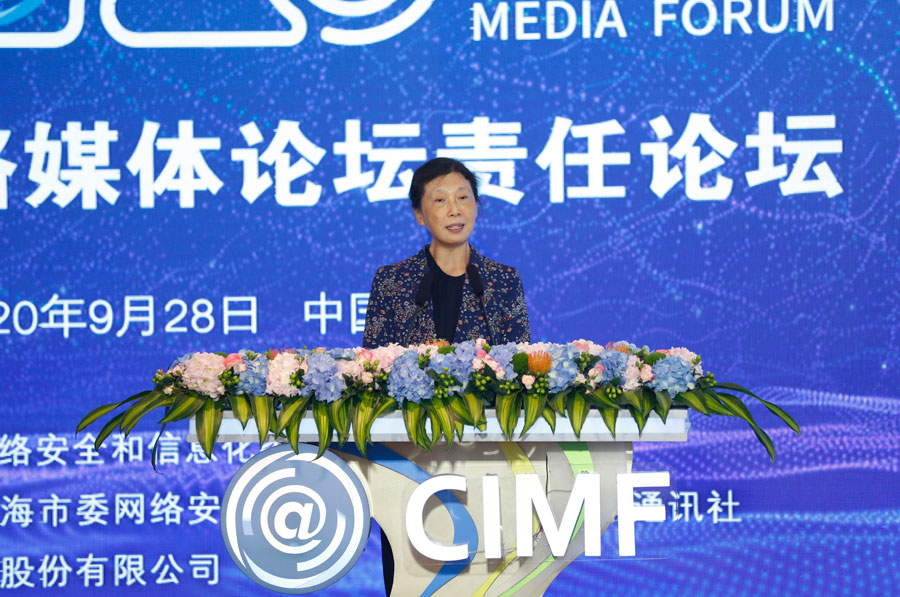 中國(guó)傳媒大學(xué)新聞傳播學(xué)部學(xué)部長(zhǎng)高曉虹在2020中國(guó)網(wǎng)絡(luò)媒體論壇責(zé)任論壇上做主題演講。新華網(wǎng) 陳杰 攝
