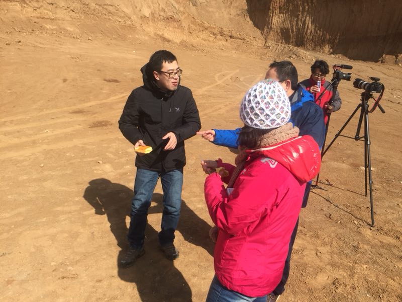 2018年初,谷業(yè)凱在陜西采訪一線測(cè)繪隊(duì)員。