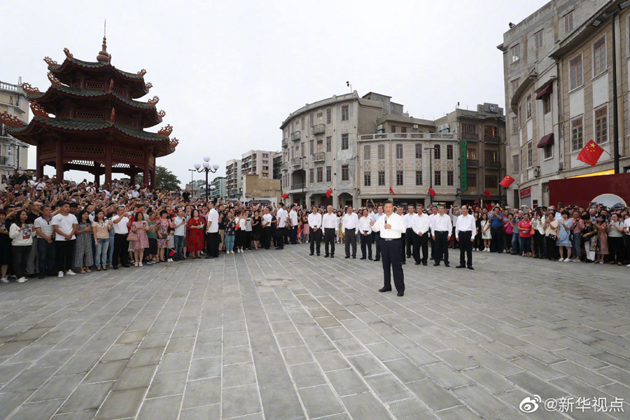 在廣東省汕頭市考察的習近平總書記步行察看開埠區(qū)街區(qū)人文歷史風貌,同熱情圍攏過來的市民群眾親切交流。習近平強調(diào),我此行到廣東考察,就是進一步向國內(nèi)外宣示,中國共產(chǎn)黨領(lǐng)導(dǎo)中國人民將繼續(xù)堅定不移走改革開放的道路,奮發(fā)有為推進社會主義現(xiàn)代化強國建設(shè),鍥而不舍努力實現(xiàn)中華民族偉大復(fù)興的中國夢。父老鄉(xiāng)親們,讓我們攜手努力,共同奮斗?。ㄎ淖钟浾撸簭垥运?、朱基釵 攝影記者:鞠鵬、王曄)