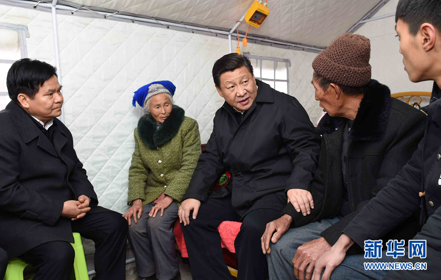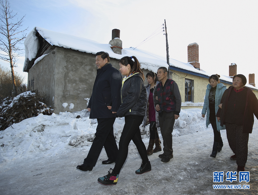2012年12月30日,習(xí)近平在河北省阜平縣龍泉關(guān)鎮(zhèn)駱駝灣村看望慰問(wèn)困難群眾。 新華社記者 蘭紅光 攝