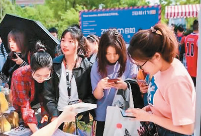 每逢畢業(yè)季,很多大學(xué)畢業(yè)生還未開始工作,就已經(jīng)開始為租房四處奔忙。圖為即將走入社會的畢業(yè)生被長租公寓吸引,了解住房租賃情況。資料圖片