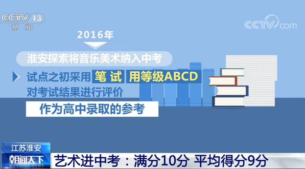 2016年,淮安探索將音樂美術(shù)納入中考,試點之初采用筆試、用等級ABCD對考試結(jié)果進(jìn)行評價,作為高中錄取的參考。2018年,改革進(jìn)一步深化,音樂、美術(shù)各以滿分5分分值計入中考總分,共十分,考核內(nèi)容主要是音樂、美術(shù)基本知識和基本素養(yǎng),考試方式由筆試調(diào)整為人機(jī)對話考核,不再局限在基本知識,而是注重考察學(xué)生對音樂和美術(shù)作品等欣賞辨析能力。
