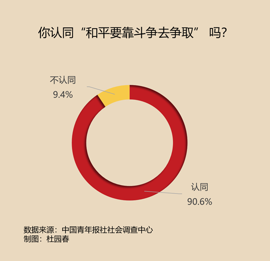 調(diào)查中,有90.6%的受訪者認(rèn)同“和平要靠斗爭去爭取”這句話。