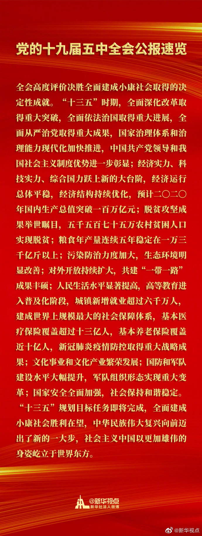 黨的十九屆五中全會公報(bào)速覽丨全會高度評價決勝全面建成小康社會取得的決定性成就-新華網(wǎng)