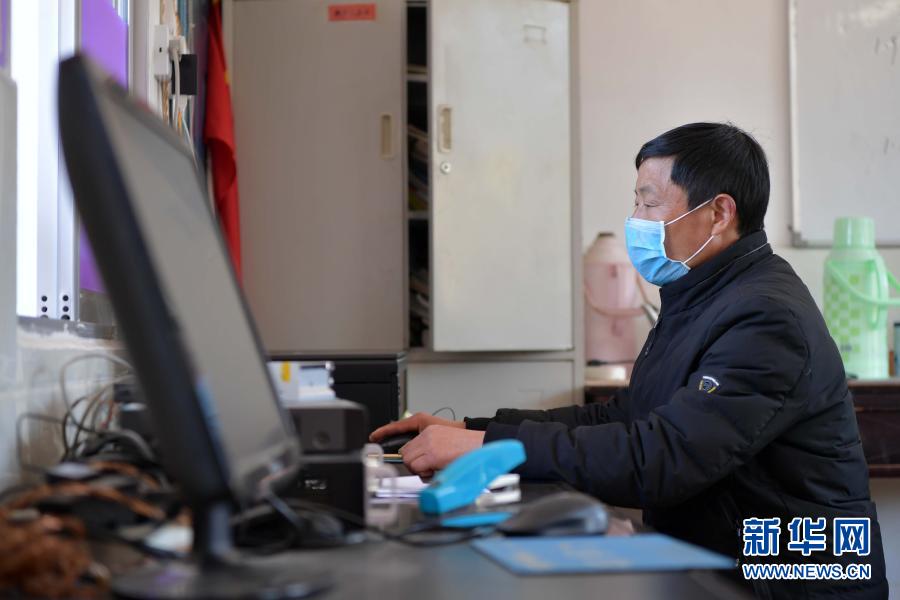 在江西省萬載縣高村鎮(zhèn)新竹村新竹小學,校長羅長石邊播邊錄當天的線上教育課程(2月17日攝)。新華社記者 彭昭之 攝