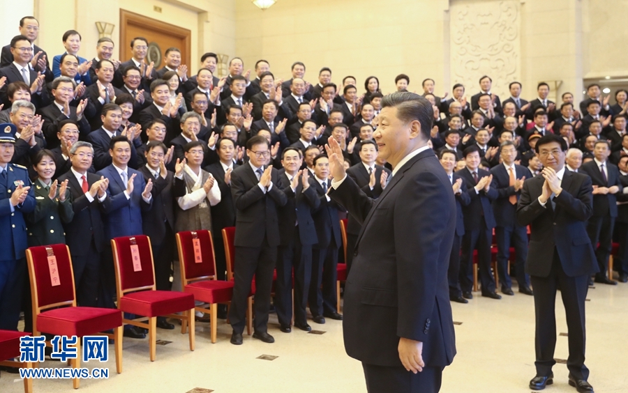 上午10時,習近平等來到京西賓館會議樓前廳,全場響起熱烈掌聲。習近平等走到代表們中間,同大家親切交流并合影留念。