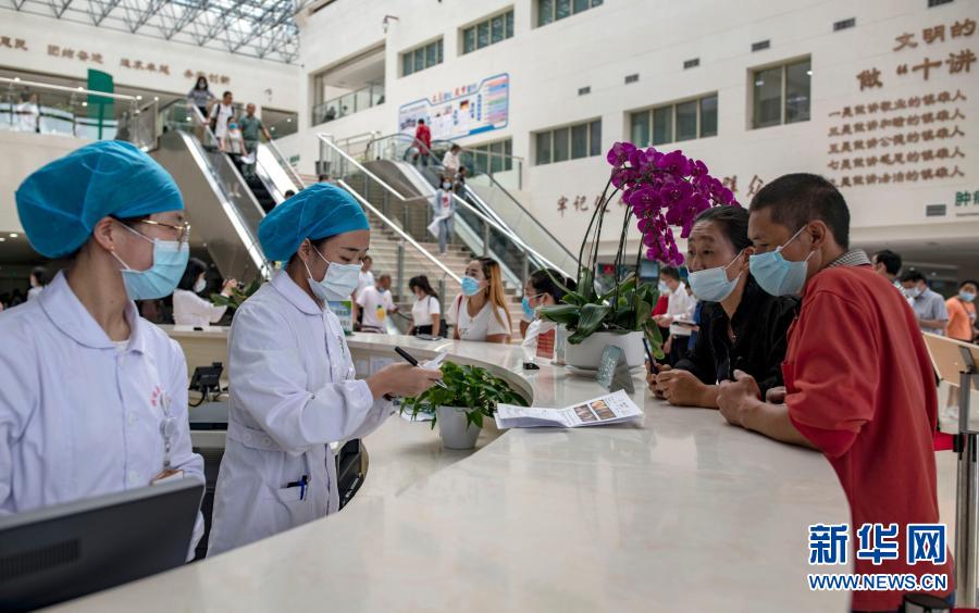 病人在云南省鎮(zhèn)雄縣人民醫(yī)院就醫(yī)。鎮(zhèn)雄縣人民醫(yī)院與四川大學(xué)華西醫(yī)院聯(lián)合辦醫(yī),是云南縣級少有的三級綜合醫(yī)院(8月11日攝)。新華社記者 江文耀 攝