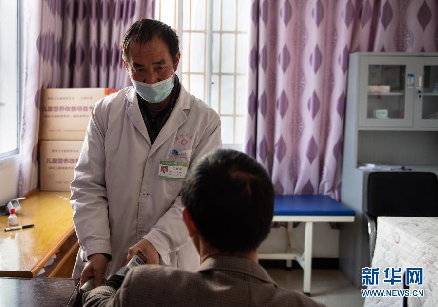 云南省鎮(zhèn)雄縣場壩鎮(zhèn)巴溜村衛(wèi)生室醫(yī)生在為村民檢查血壓(11月14日攝)。新華社記者 王冠森 攝