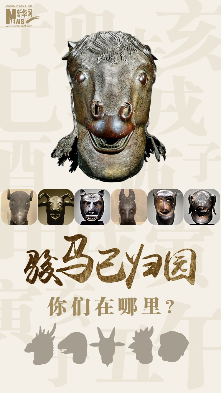 多年來,在國家文物局和社會各界力量的共同努力下,已經(jīng)有包括牛首、猴首、虎首、豬首、鼠首、兔首、馬首在內(nèi)的七尊圓明園流失獸首銅像通過不同的方式回歸祖國。截至目前,包括龍首、蛇首、羊首、雞首和狗首在內(nèi)的五尊獸首仍然下落不明。(海報策劃:王瑩? 制作:王曄)