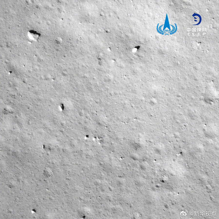 12月1日23時11分,嫦娥五號探測器成功著陸在月球正面西經(jīng)51.8度、北緯43.1度附近的預(yù)選著陸區(qū),并傳回著陸影像圖。(記者胡喆,圖片來源:國家航天局)