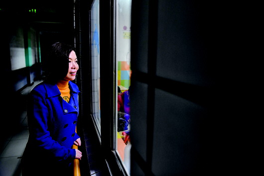 11月25日,蕪湖市盲人學(xué)校校長(zhǎng)席蔚菁在教室外查看學(xué)生自習(xí)情況。新華社記者劉軍喜攝