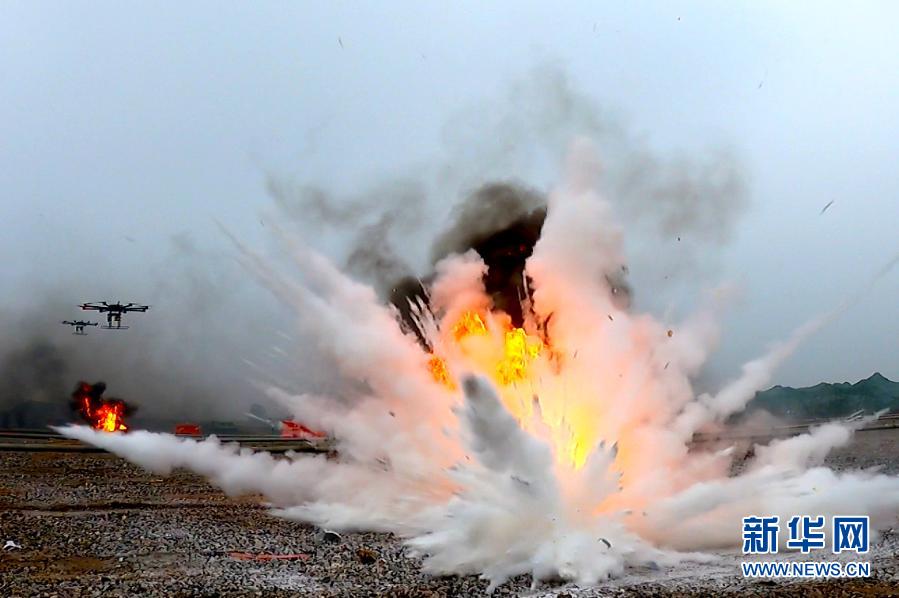 油料保障隊組織參賽隊員進(jìn)行無人機(jī)滅火作業(yè)(12月1日視頻截圖)。新華社發(fā)(呂冀周 攝)