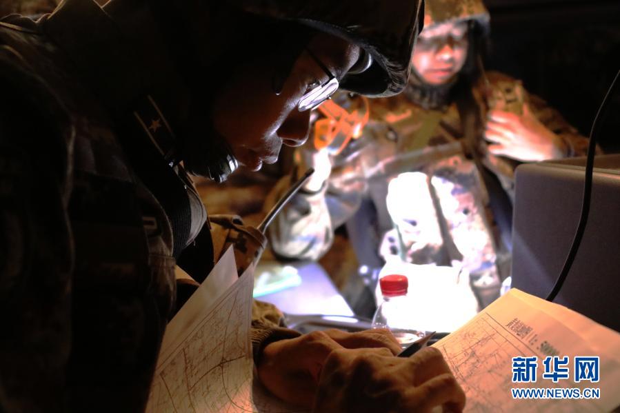 汽車運(yùn)輸專業(yè)參賽隊員在野外進(jìn)行圖上方位判定(11月30日攝)。新華社發(fā)(呂冀周 攝)