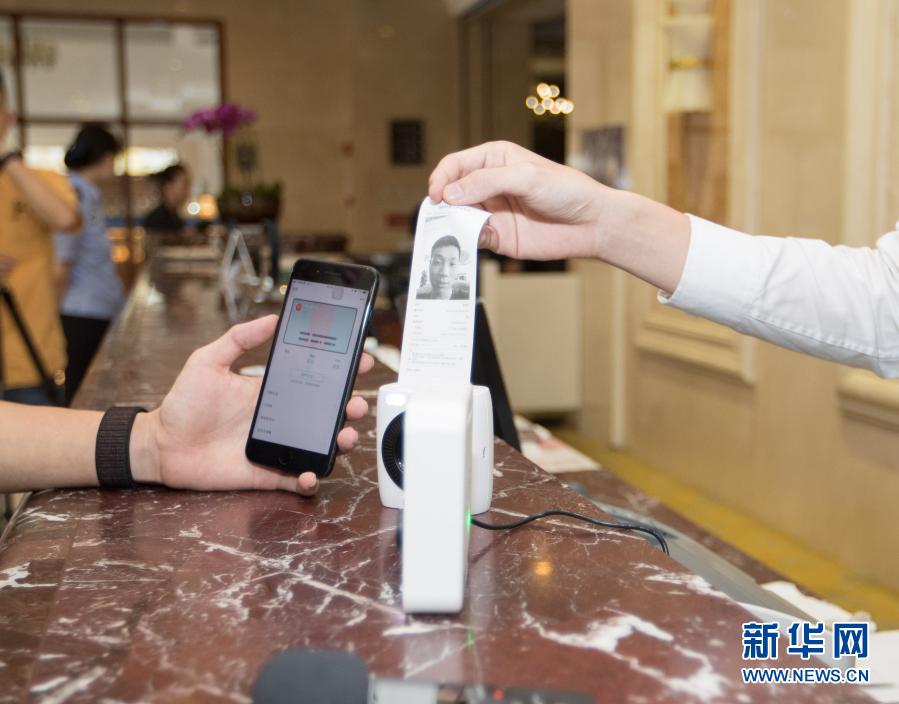 這是“微警認(rèn)證”身份認(rèn)證技術(shù)在辦理酒店入住時(shí)的應(yīng)用場景(2018年7月19日攝)。新華社發(fā)(廣州市公安局供圖)