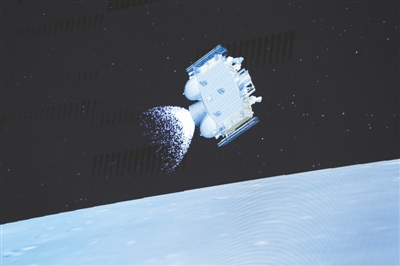 圖為12月3日,在北京航天飛行控制中心拍攝的嫦娥五號(hào)上升器飛行過程。新華社記者 金立旺攝