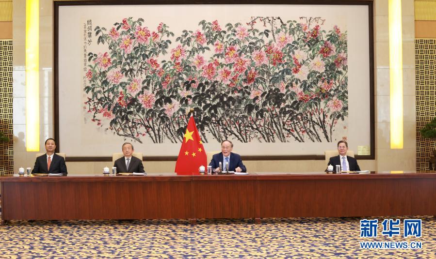 12月4日,國家副主席王岐山在北京以視頻方式會見清華大學(xué)經(jīng)濟(jì)管理學(xué)院顧問委員會海外委員和中方企業(yè)家委員。 新華社記者 丁林 攝