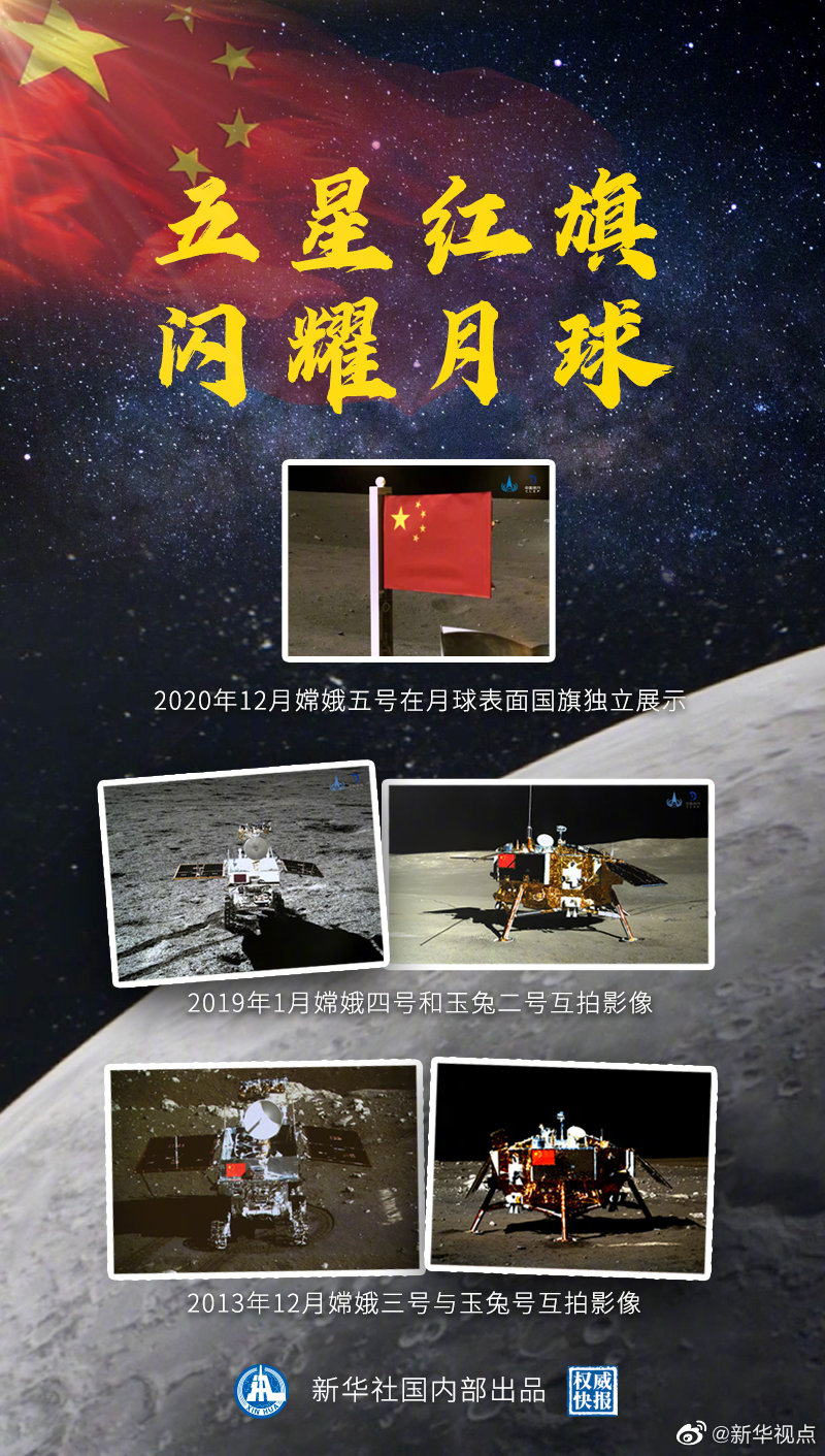 經(jīng)過科研團(tuán)隊(duì)的數(shù)據(jù)接收和處理,4日下午,國(guó)家航天局公布了探月工程嫦娥五號(hào)探測(cè)器在月球表面國(guó)旗獨(dú)立展示的照片。這是繼嫦娥三號(hào)、四號(hào)任務(wù)后,五星紅旗又一次展現(xiàn)在月球表面。畫面中,鮮艷的五星紅旗格外耀眼。轉(zhuǎn)發(fā),祝福祖國(guó)!??