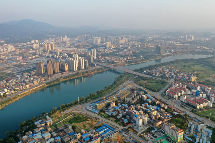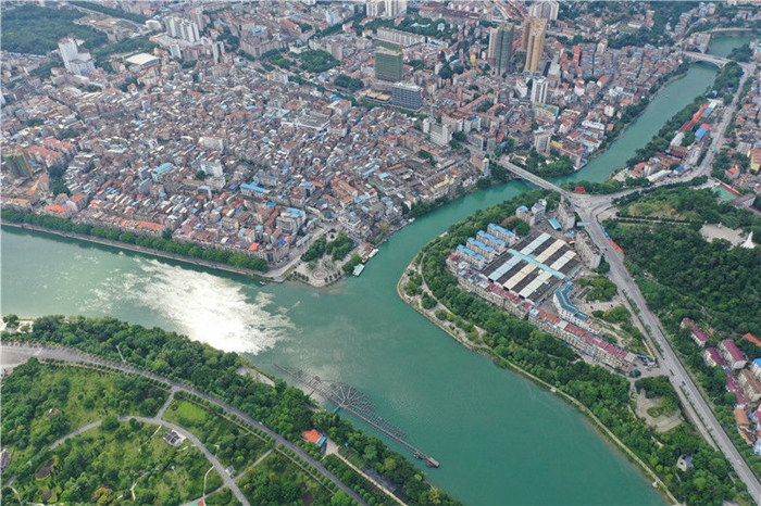廣西百色市城區(qū)新貌(2019年8月29日攝,無(wú)人機(jī)照片)。新華社記者 曹祎銘 攝