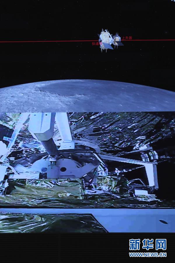 記者從國(guó)家航天局獲悉,12月6日5時(shí)42分,嫦娥五號(hào)上升器成功與軌道器返回器組合體交會(huì)對(duì)接,并于6時(shí)12分將月球樣品容器安全轉(zhuǎn)移至返回器中。這是我國(guó)航天器首次實(shí)現(xiàn)月球軌道交會(huì)對(duì)接。新華社記者 金立旺 攝