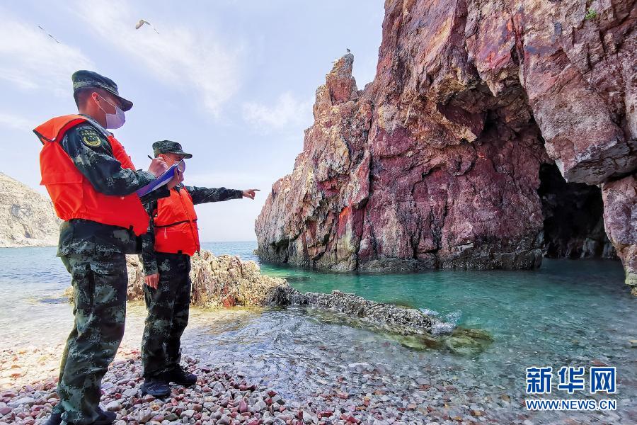 海警執(zhí)法員對(duì)轄區(qū)無(wú)居民海島進(jìn)行檢查(5月20日攝)。新華社發(fā)(包新宇 攝)