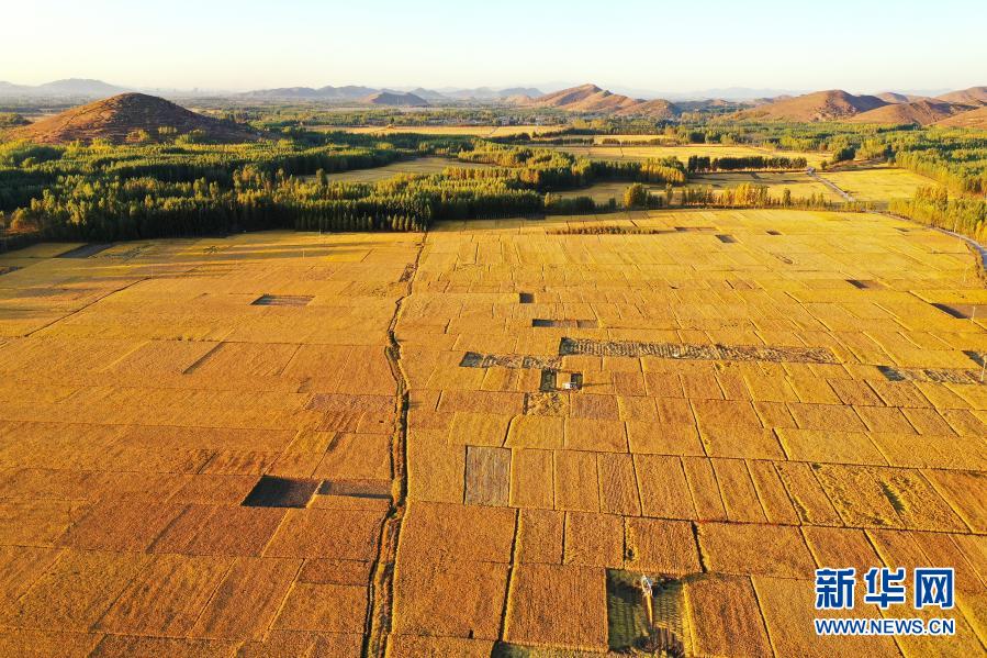 10月18日在河北省灤州市古城街道蔣莊村拍攝的稻田(無(wú)人機(jī)照片)。