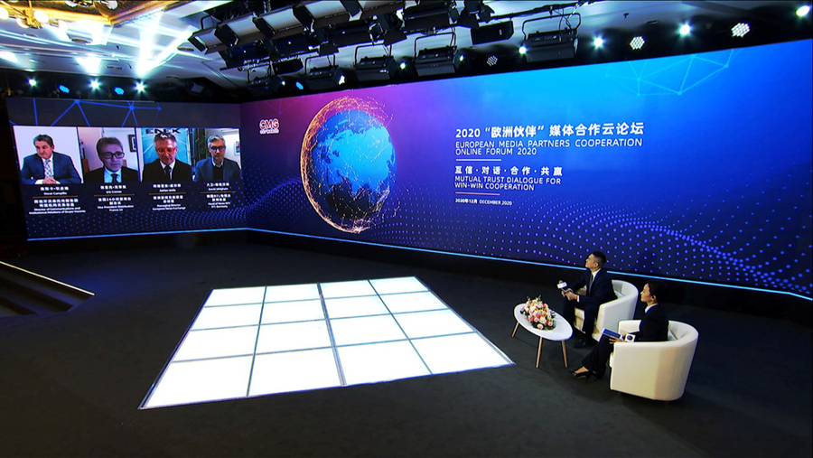 12月10日,中央廣播電視總臺以視頻連線的方式舉辦2020“歐洲伙伴”媒體合作云論壇。中宣部副部長、中央廣播電視總臺臺長、總編輯慎海雄出席并發(fā)表致辭,強調(diào)堅持多邊主義,加強對話交流,構(gòu)建中歐媒體伙伴關(guān)系。中央廣播電視總臺相關(guān)代表與來自歐洲地區(qū)16個國家25家媒體機(jī)構(gòu)的28名與會代表圍繞“互信·對話·合作·共贏”主題,相聚云端展開對話,共同發(fā)布《加強媒體合作聯(lián)合聲明》,積極推動中歐媒體加強合作、同舟共濟(jì)、團(tuán)結(jié)抗疫,提振國際社會信心。