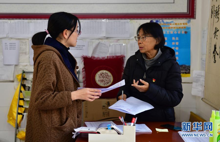 張桂梅在課間操前向?qū)W生反饋衛(wèi)生、上課等檢查情況(12月1日攝)。新華社發(fā)(陳欣波 攝)