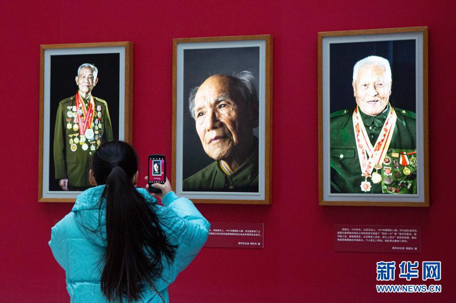 12月13日,參觀者在中國人民革命軍事博物館拍攝“致敬最可愛的人——中國人民志愿軍老戰(zhàn)士主題影像展”。