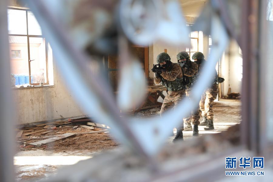 武警第一機動總隊某支隊特戰(zhàn)隊員在進行房間搜索訓(xùn)練(12月15日攝)。新華社發(fā)(常龍 攝)