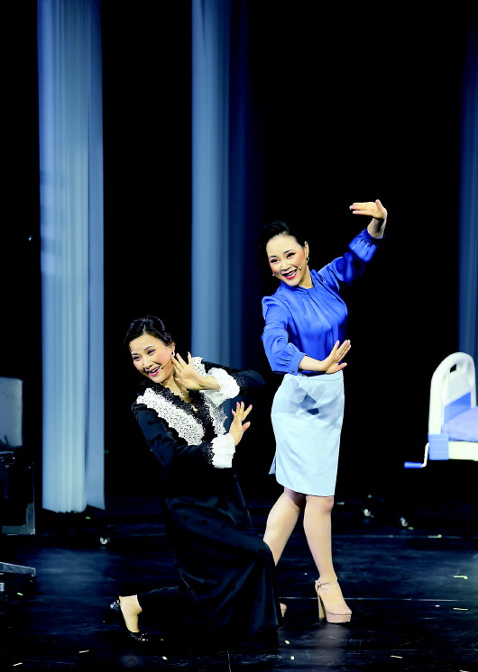 當(dāng)《梁?!窛u變?yōu)椤对扑伞分餍?,在滿臺(tái)絲綢瀲滟與氤氳霧氣中,時(shí)光返照回柯鴻的夢(mèng)境。天海集團(tuán)董事長(zhǎng)張?zhí)熨n的歸家路變成黃泉路,妻子柯鴻仍在倚門(mén)癡望?!读鹤!分心乖岷仙细嫒珓〗K結(jié),新劇中陰陽(yáng)兩隔卻是嶄新的開(kāi)始——這是編劇兼導(dǎo)演李卓群的構(gòu)思巧妙之處。