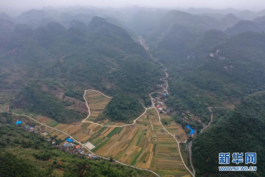 廣西羅城仫佬族自治縣四把鎮(zhèn)的山區(qū)路網(wǎng)(12月15日攝,無(wú)人機(jī)照片)。新華社記者 曹祎銘 攝