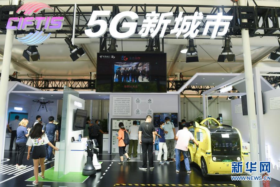觀眾在2020年中國國際服務(wù)貿(mào)易交易會5G通信服務(wù)專題展區(qū)參觀(9月7日攝)。新華社記者 魯鵬 攝