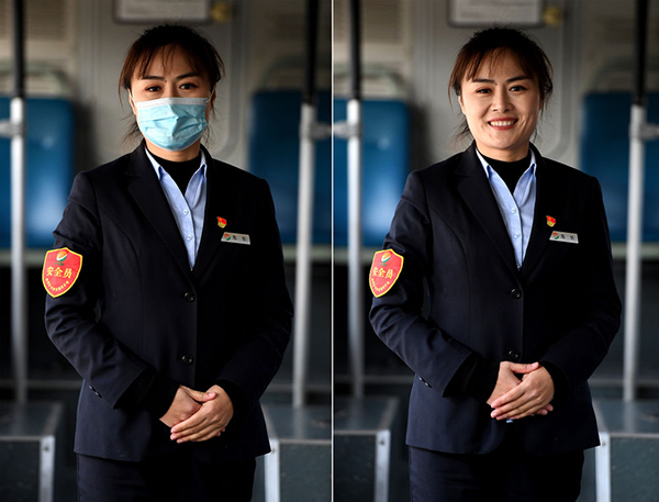 這是12月18日拍攝的鄭州公交二公司B38路公交車車長(zhǎng)黃菲肖像(拼版照片)。