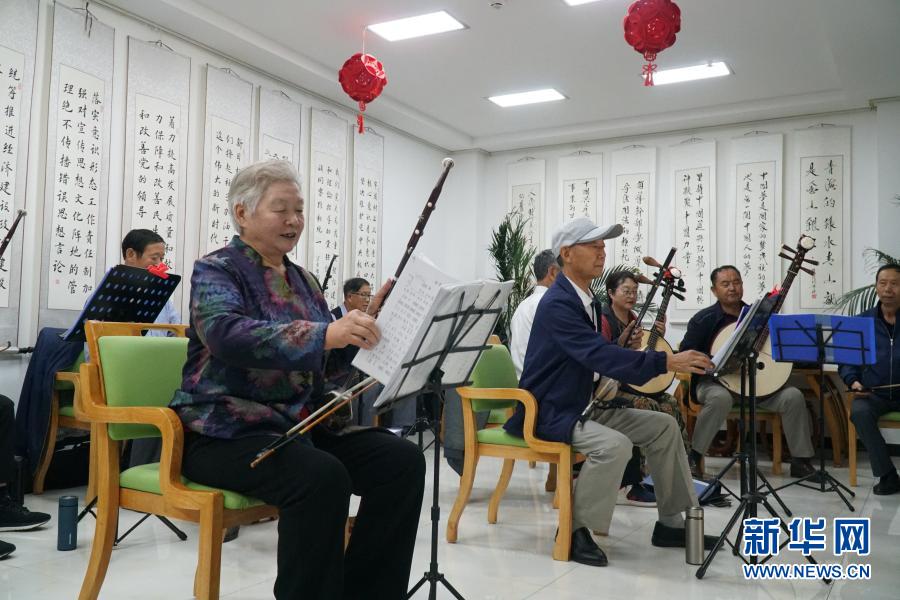 8月21日,在西寧市城西區(qū)光華路社區(qū)日間照料中心,老人們?cè)诨顒?dòng)室排練節(jié)目。新華社記者 張子琪 攝
