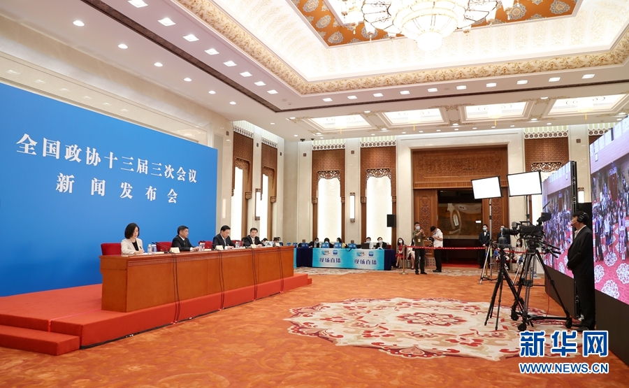 5月20日,全國政協(xié)十三屆三次會議新聞發(fā)布會在北京舉行,大會新聞發(fā)言人郭衛(wèi)民介紹本次大會有關(guān)情況并回答中外記者提問。圖為人民大會堂新聞發(fā)布廳現(xiàn)場。新華網(wǎng) 王翰林 攝