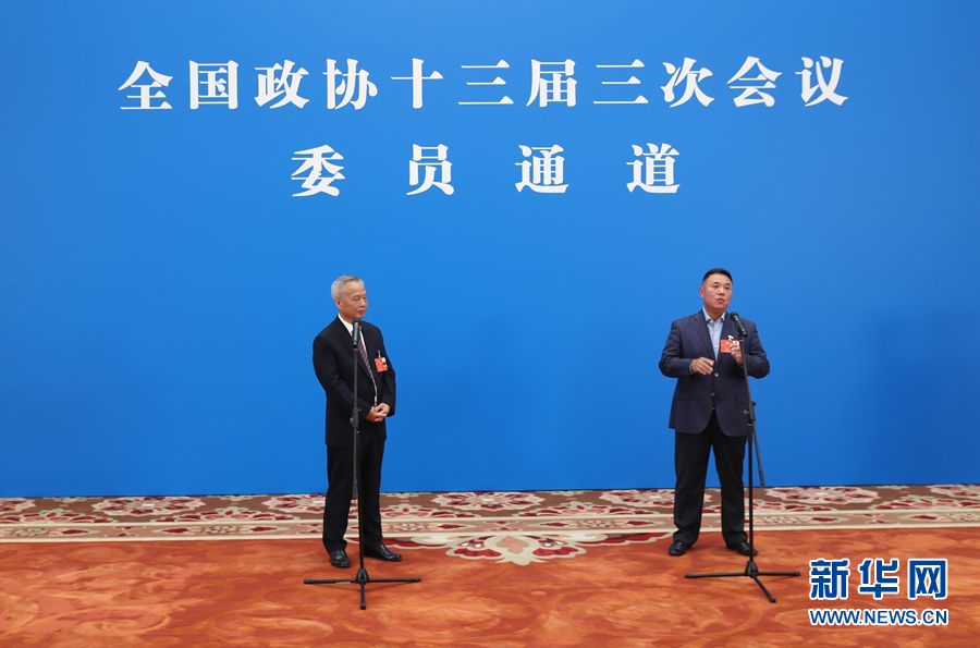 全國(guó)政協(xié)十三屆三次會(huì)議首場(chǎng)“委員通道”采訪活動(dòng)于5月21日在人民大會(huì)堂新聞發(fā)布廳舉行,邀請(qǐng)部分全國(guó)政協(xié)委員通過網(wǎng)絡(luò)視頻方式接受媒體采訪。圖為“委員通道”現(xiàn)場(chǎng)。新華網(wǎng) 王翰林 攝