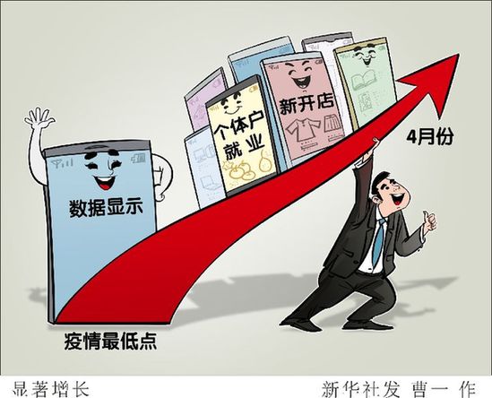 數(shù)據(jù)顯示,4月份與疫情最低點(diǎn)2月1日當(dāng)周相比,每周新增個(gè)體戶小店數(shù)量平均提高79%,每周新增小店的交易金額平均增長(zhǎng)305%。在2月上旬,活躍的個(gè)體戶小店減少了40.4%,營(yíng)業(yè)額降低了52.4%。(新華社發(fā) 曹一 作)