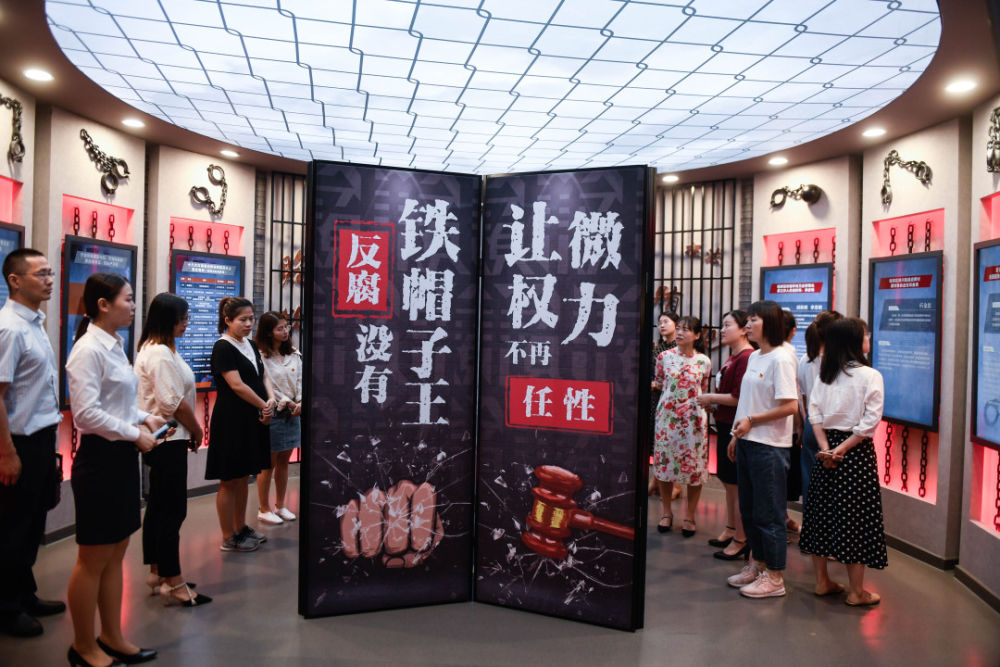 公職人員在浙江寧波長山清風(fēng)館的“典案醒廉”展廳參觀。(新華社記者黃宗治 攝)
