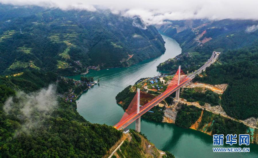 這是2020年10月1日拍攝的貴州劍榕高速清水江特大橋(無人機照片)。