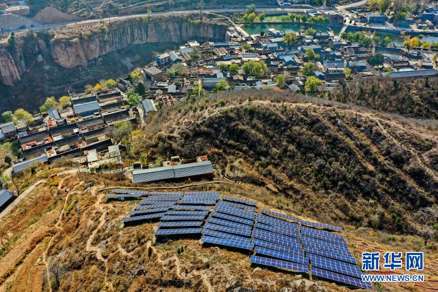 這是2020年11月11日拍攝的山西省平順縣虹霓村的光伏電站(無人機(jī)照片)。