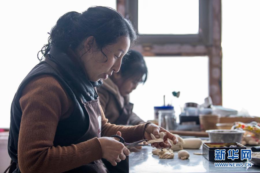 2020年12月30日,劉志平在位于嵐縣縣城的面塑一條街學習制作面塑。新華社記者 楊晨光 攝
