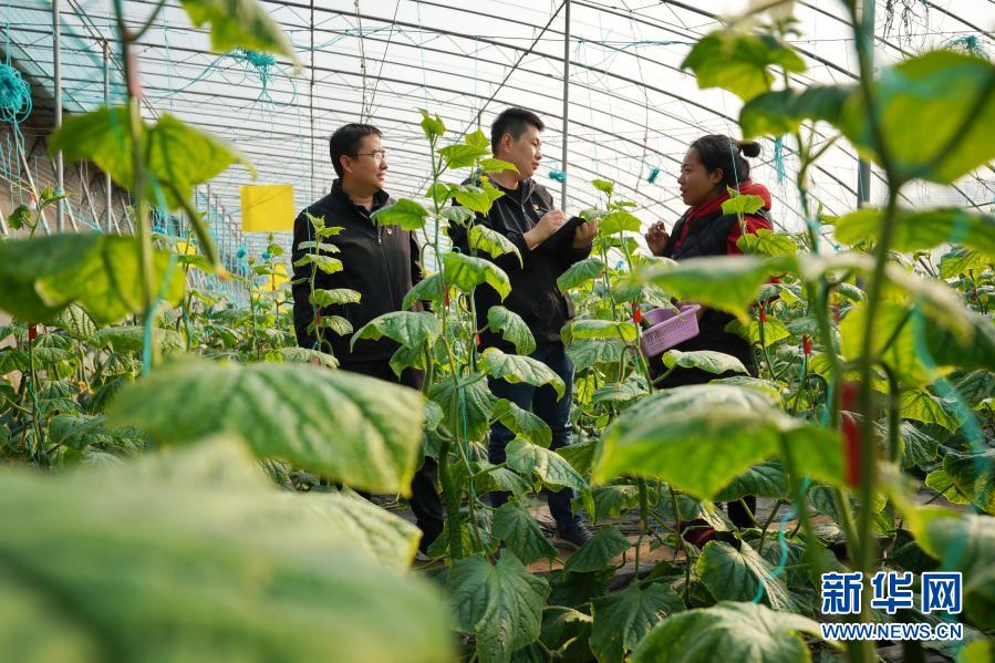 2020年12月10日,河北省巨鹿縣紀委監(jiān)委工作人員(左一和左二)在巨鹿縣一個農(nóng)業(yè)園區(qū)的大棚向種植戶了解扶貧資金落實情況。 新華社記者 牟宇 攝